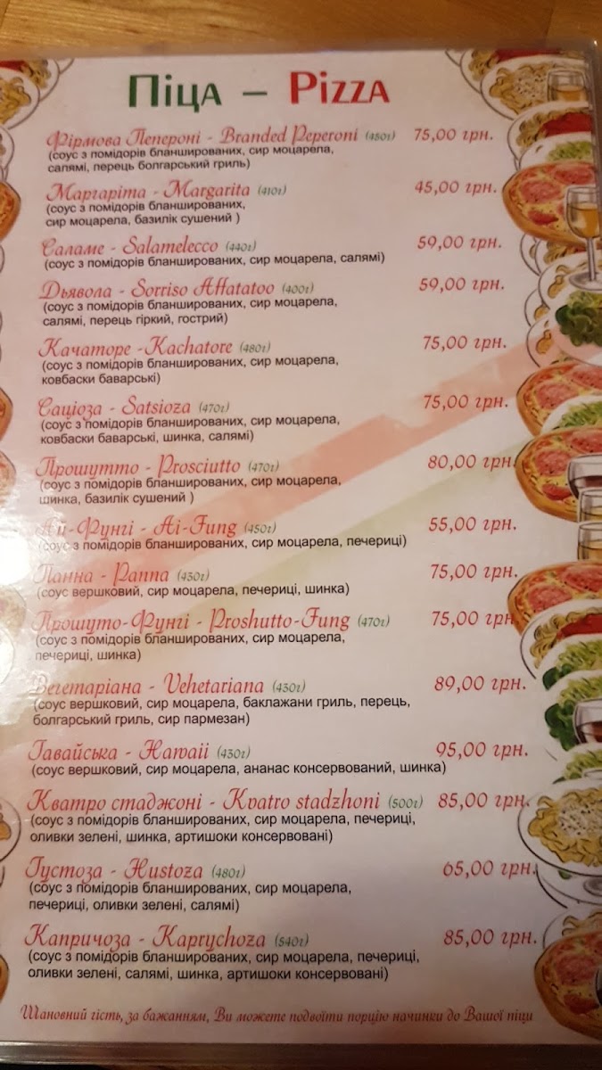 Welcome to Peperoni, a hidden gem nestled on Tekstyl'na St in Ternopil, Ukraine. This vibrant eatery is quickly gaining a reputation for its flavorful dishes and inviting ambiance. With a menu that tantalizes the taste buds, Peperoni offers an array of mouthwatering pizzas, including the delightful '4 Flavors' pizza, alongside hearty salads like the 'Gracie' salad that leaves patrons feeling satisfied.